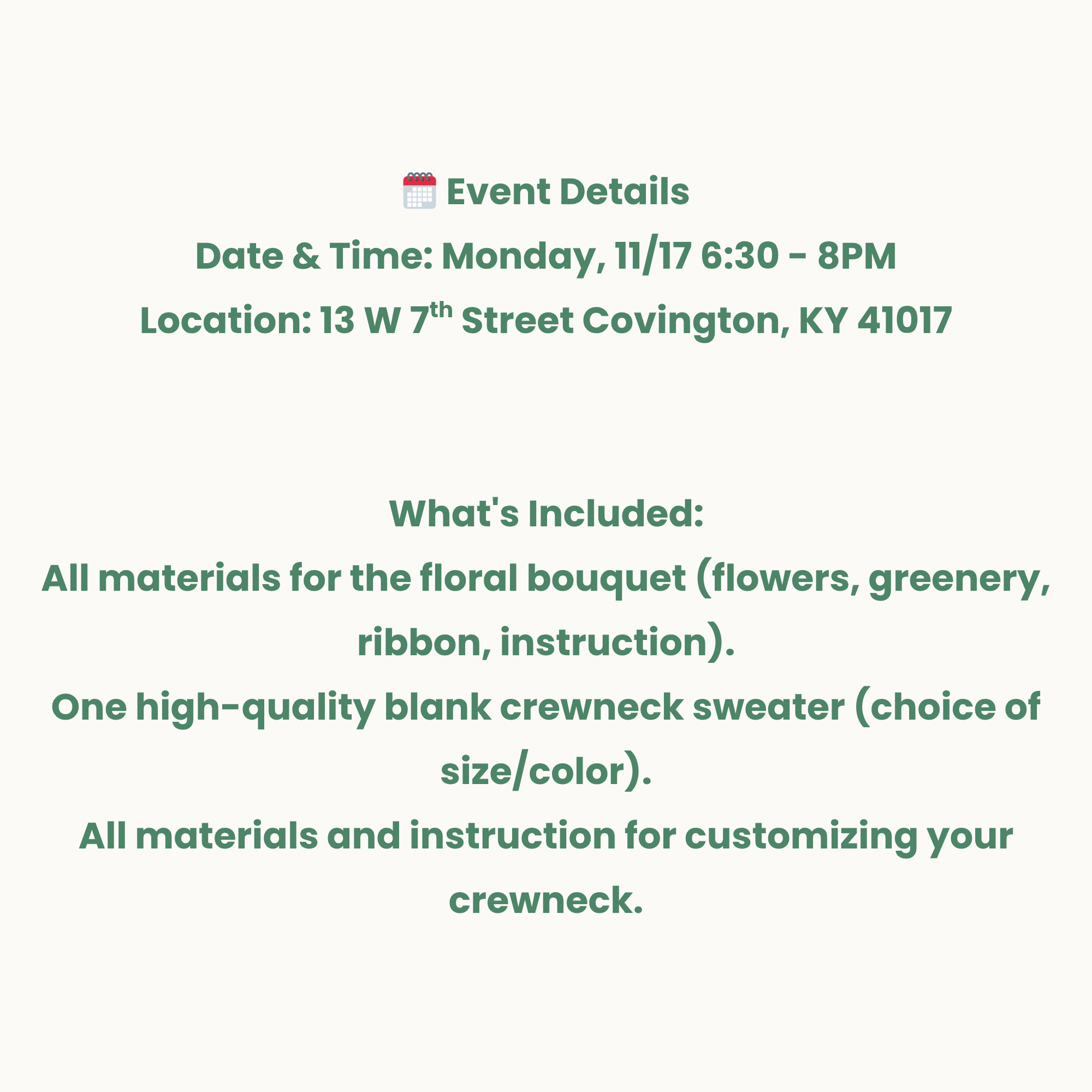From Arden & Gold: You'll learn the techniques to personalize a soft, comfortable crewneck (choice of color and size available upon sign-up).