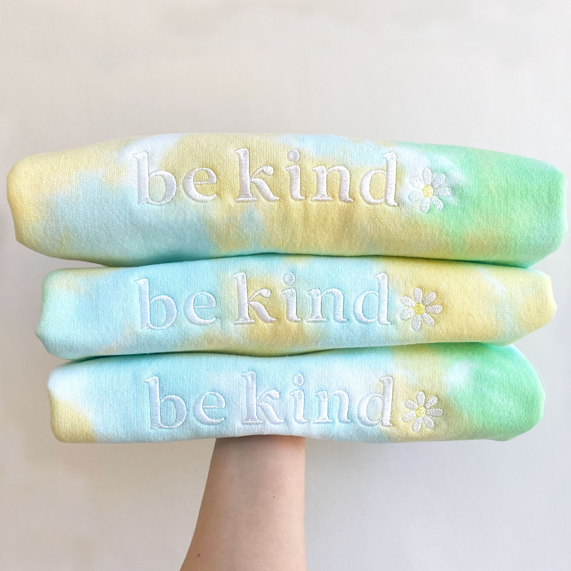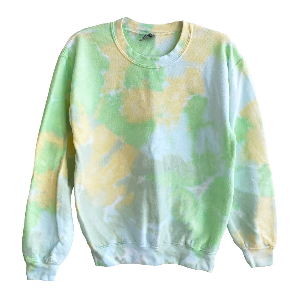 Be Kind Embroidered Daisy Lemon Lime Tie-Dye Crewneck Sweatshirt