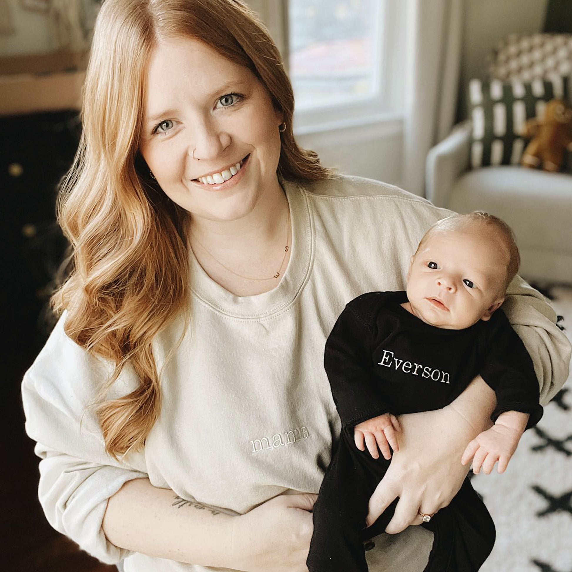 Not only is this sweatshirt perfect for the modern mama, but it is also an ideal choice for bringing baby home from the hospital or for a family newborn photoshoot. And to complete the look, be sure to check out our matching minimal dad, sibling, and baby customizable tops!
