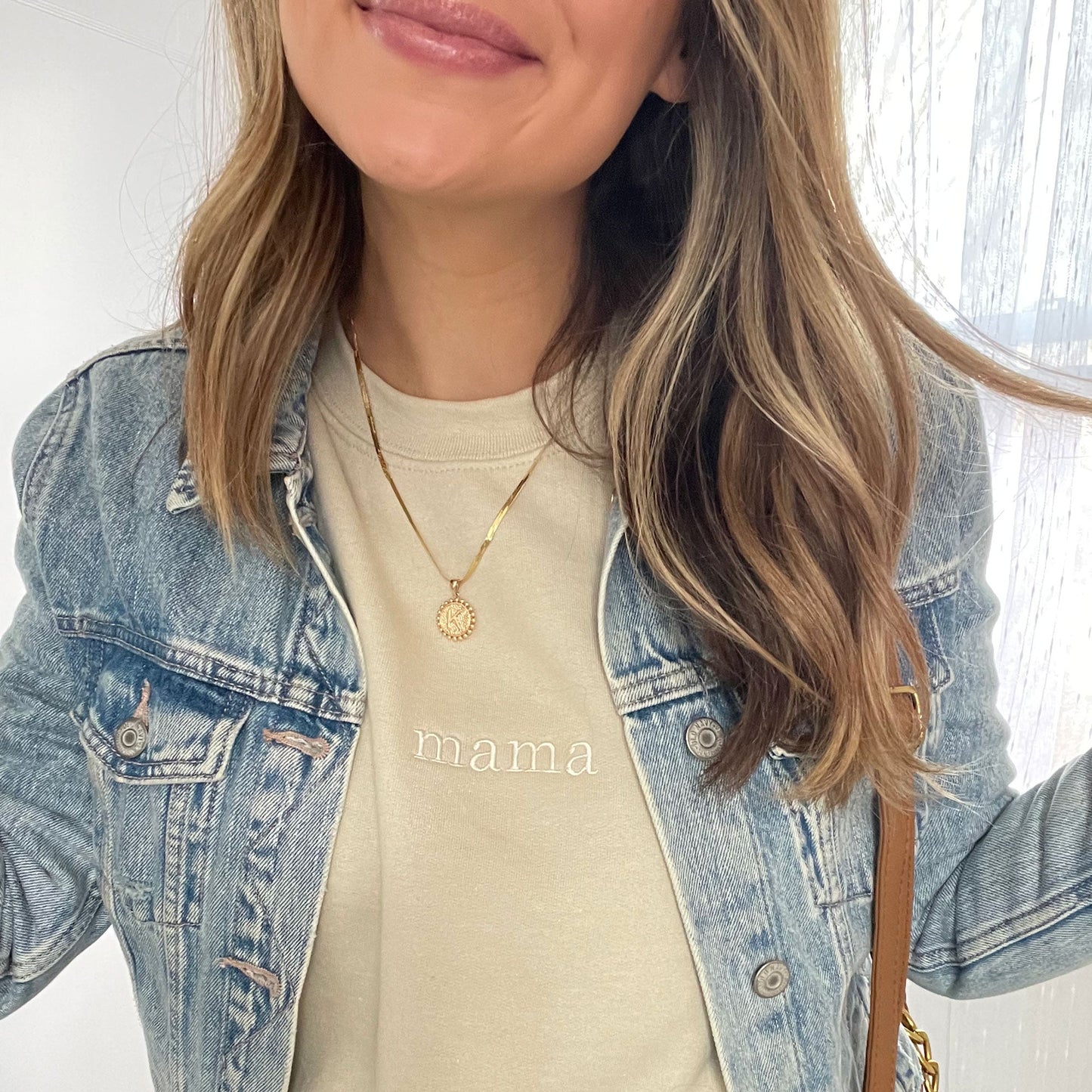 The minimalist design features a subtle embroidery of the word "mama", adding a touch of elegance to the simple crewneck style. The sweatshirt is available in a range of sizes to ensure a perfect fit for every body type.