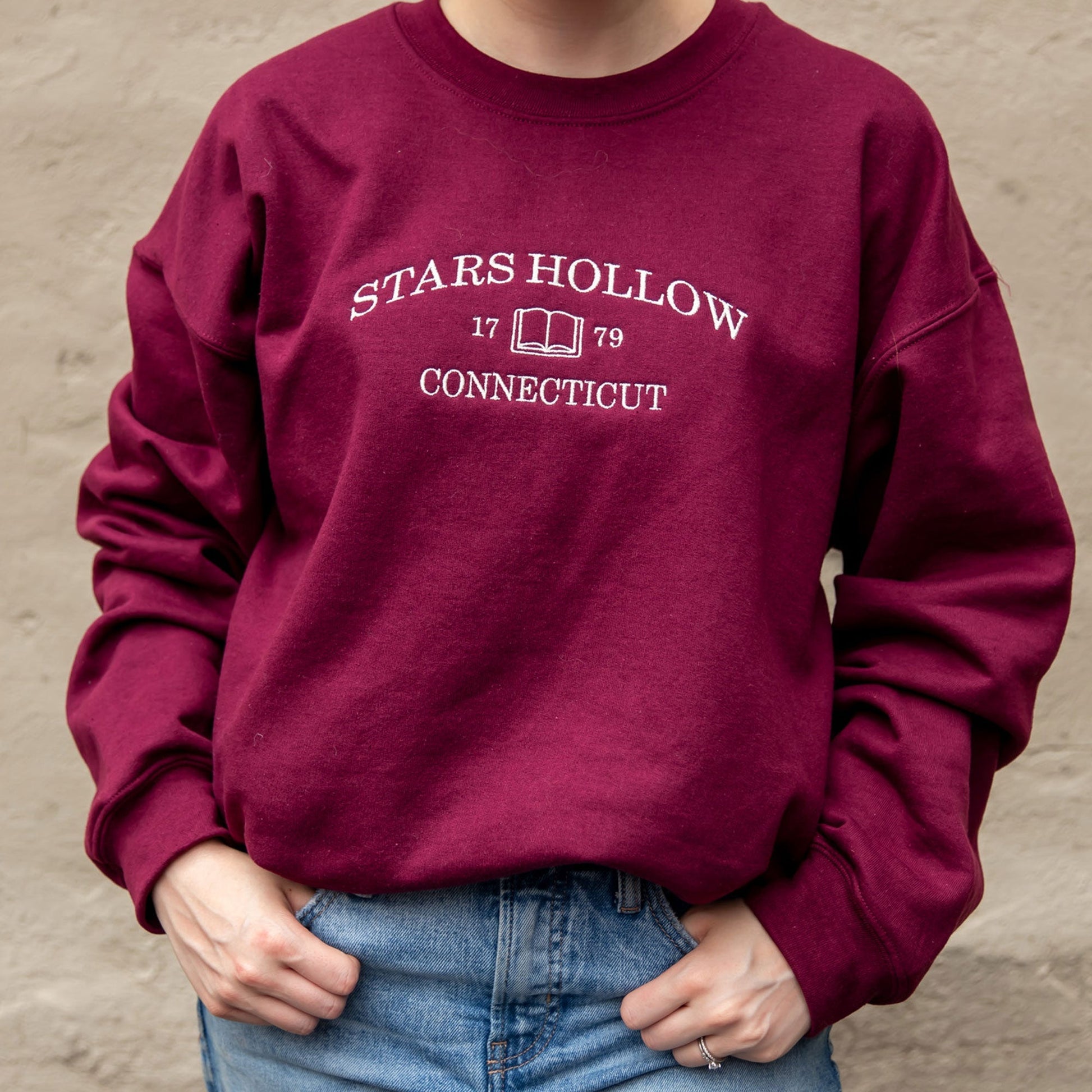 Looking for a way to show your Stars Hollow pride? Grab this cozy unisex sweatshirt and you can represent your love for the iconic show everywhere you go! The Stars Hollow embroidery will be the envy of all your friends. Perfect for staying cozy during fall, it's the Gemma crewneck sweatshirt - Lorelai and Rory approved!