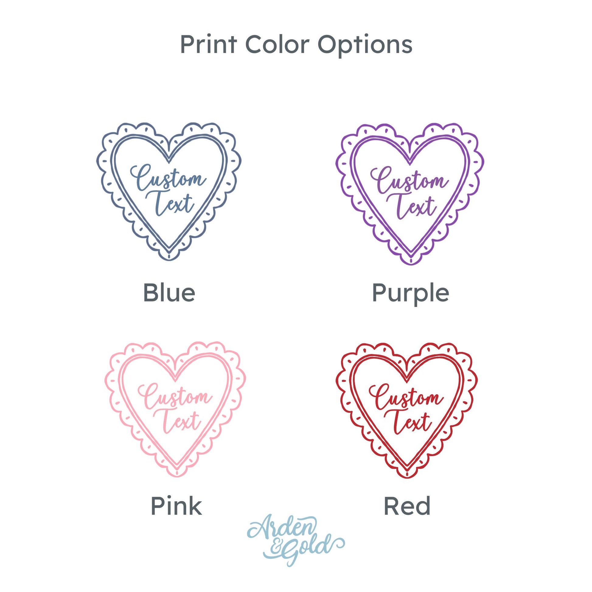 Custom printed heart design with personalized text