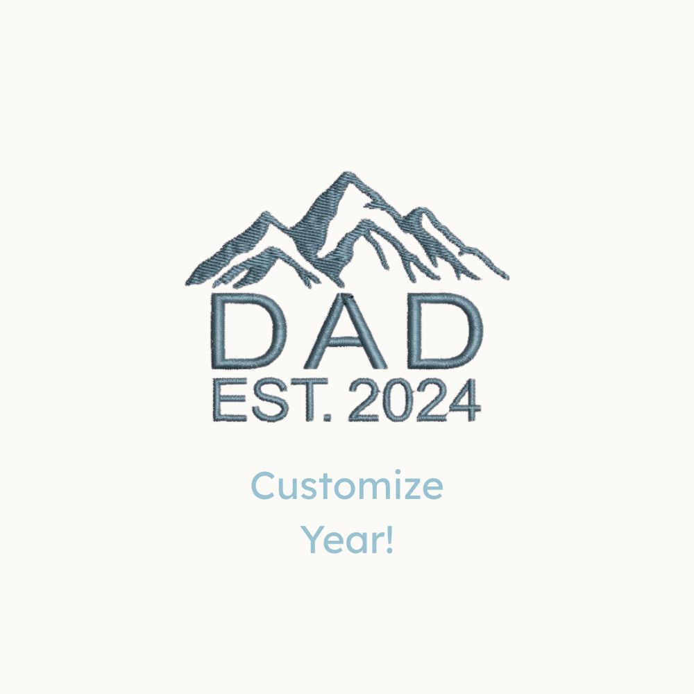 Embroidered mountain graphic with custom year (ex: EST. 2024)