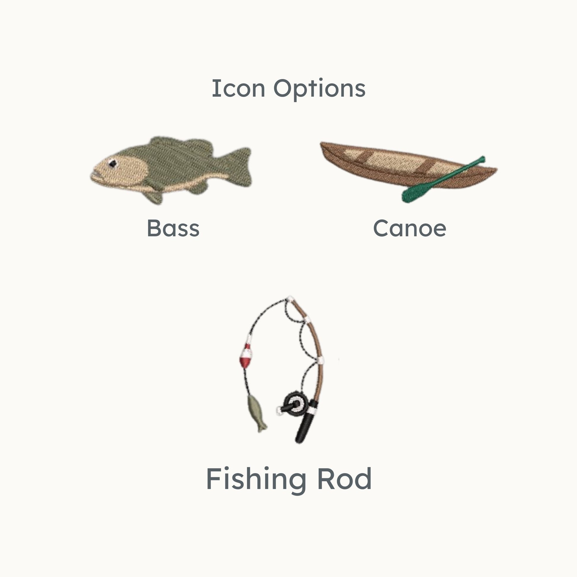 Choose your favorite fishing-themed embroidered icon: