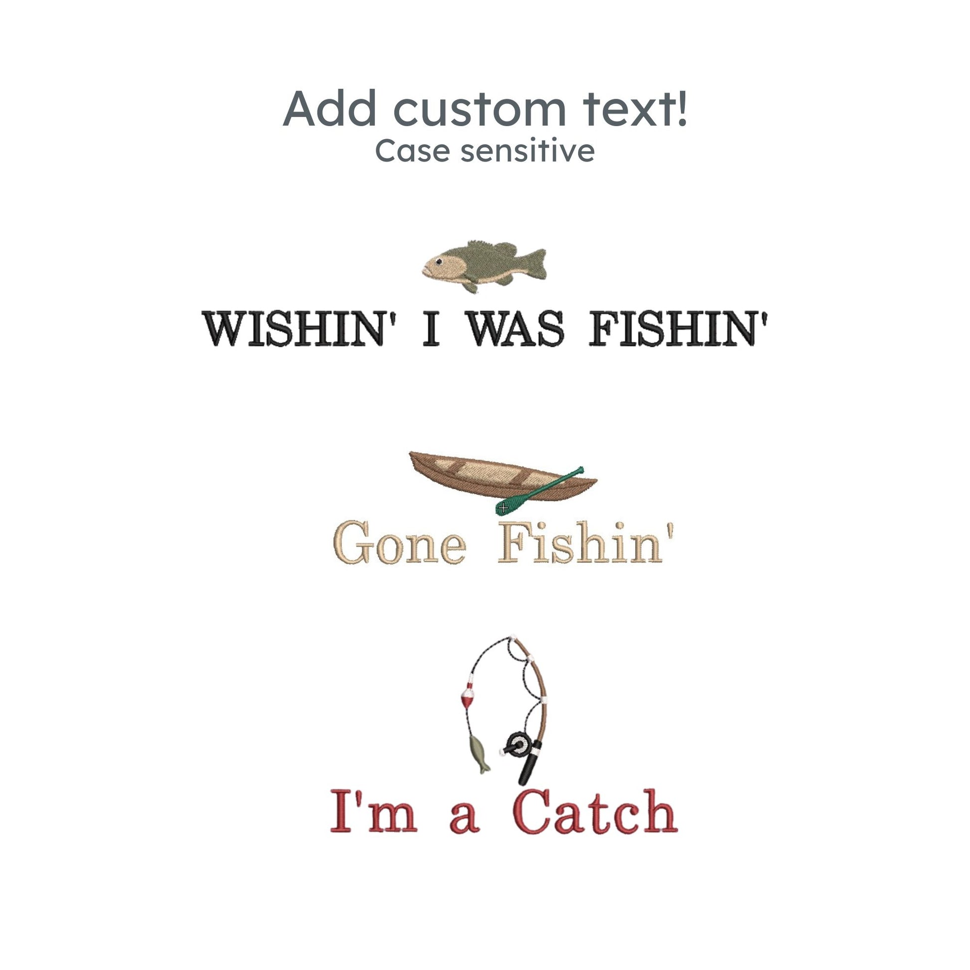 Then, add your custom text — a name, nickname, favorite fishing spot, or funny saying — to make it one-of-a-kind!