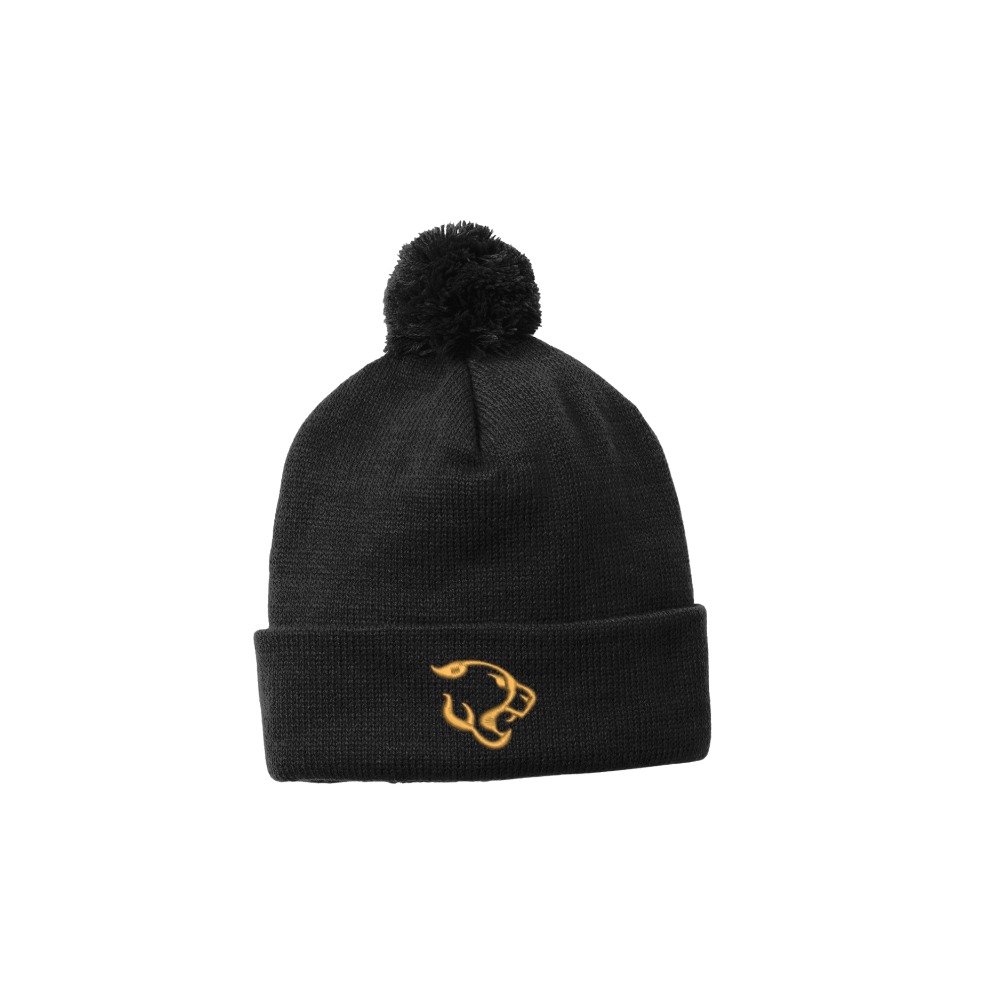 Stay warm and show your spirit with this cozy embroidered cougar pom beanie. Perfect for chilly days, the soft knit construction keeps your head and ears protected while the bold cougar logo adds a touch of school pride or team spirit!