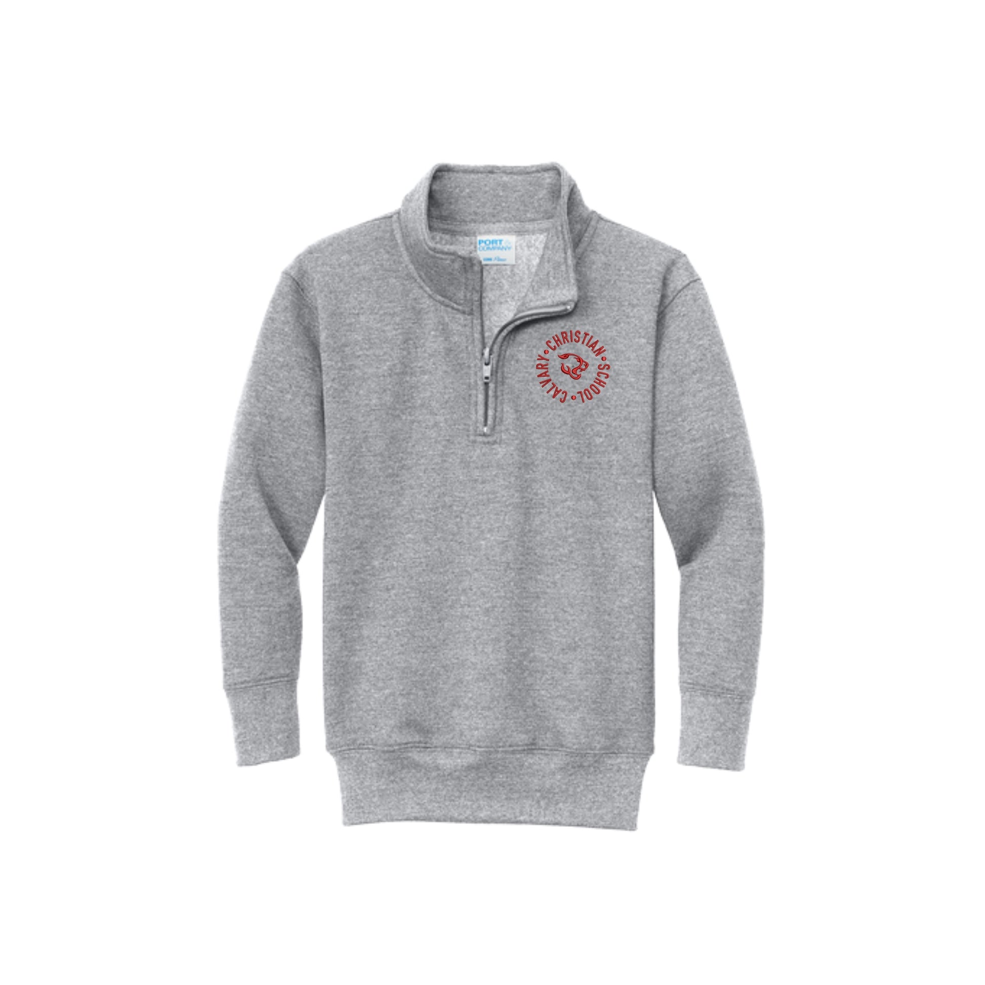 Gear up your student in this cozy quarter zip sweatshirt featuring the iconic Calvary Christian Cougars embroidered logo. Designed with comfort and school spirit in mind, this versatile piece layers perfectly over any outfit—whether heading to class, cheering at games, or hanging out with friends. The soft fabric and classic fit make it an everyday favorite that celebrates your Cougar pride. Perfect for building a wardrobe that shows off your school spirit with style and confidence!