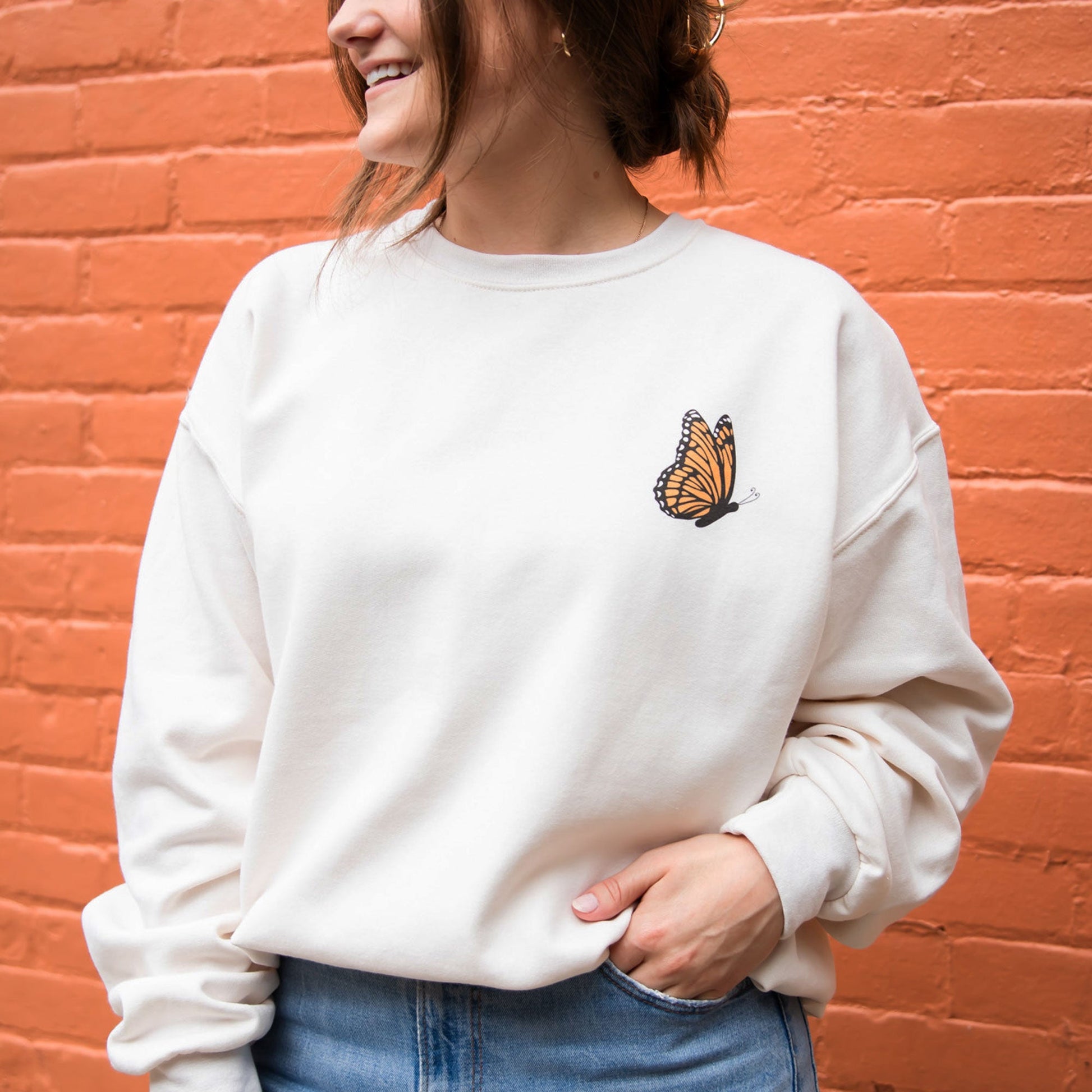 Unleash your inner-free spirit and Follow Your Butterflies in this cozy crewneck sweatshirt! Featuring a small butterfly design on the front, and a larger, inspiring back design reading "Follow Your Butterflies", it's the perfect way to make a statement wherever you go!