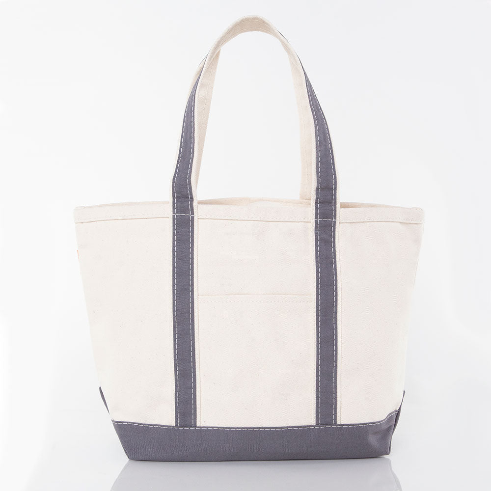 A smaller version of our best selling Canvas Tote. This is a great versatile canvas tote, use it to carry your books to class, your towels to the beach or take it with you to the grocery store!! This has been a favorite for bridesmaid gifts and flower girls gifts (due to the smaller size). Includes a zippered top.