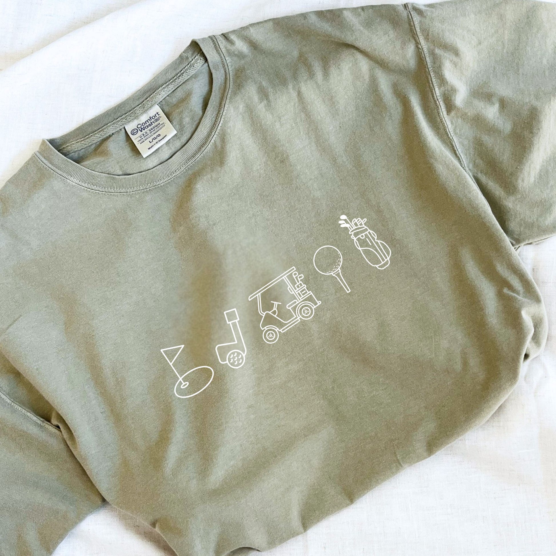 Tee off in comfort and style with our Outlined Golf Icons Comfort Colors T-Shirt — the perfect gift for the golf-loving dad, grandpa, or guy in your life! Whether he’s spending time on the course or just dreaming of his next round, this ultra-soft, garment-dyed tee is a hole-in-one for Father's Day, birthdays, or golf season.
