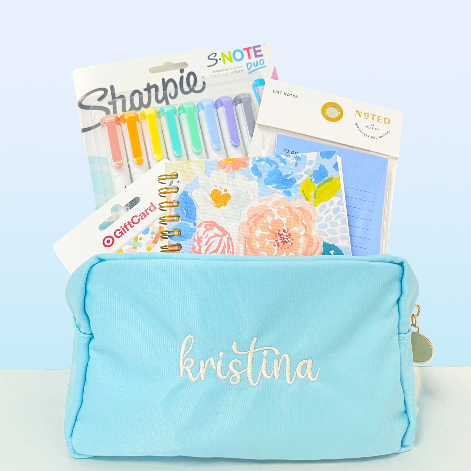 The personalized touch of embroidered personalization adds a special charm to this pouch, making it uniquely yours. Choose your name or initials to be beautifully embroidered, creating a one-of-a-kind organizational tool.