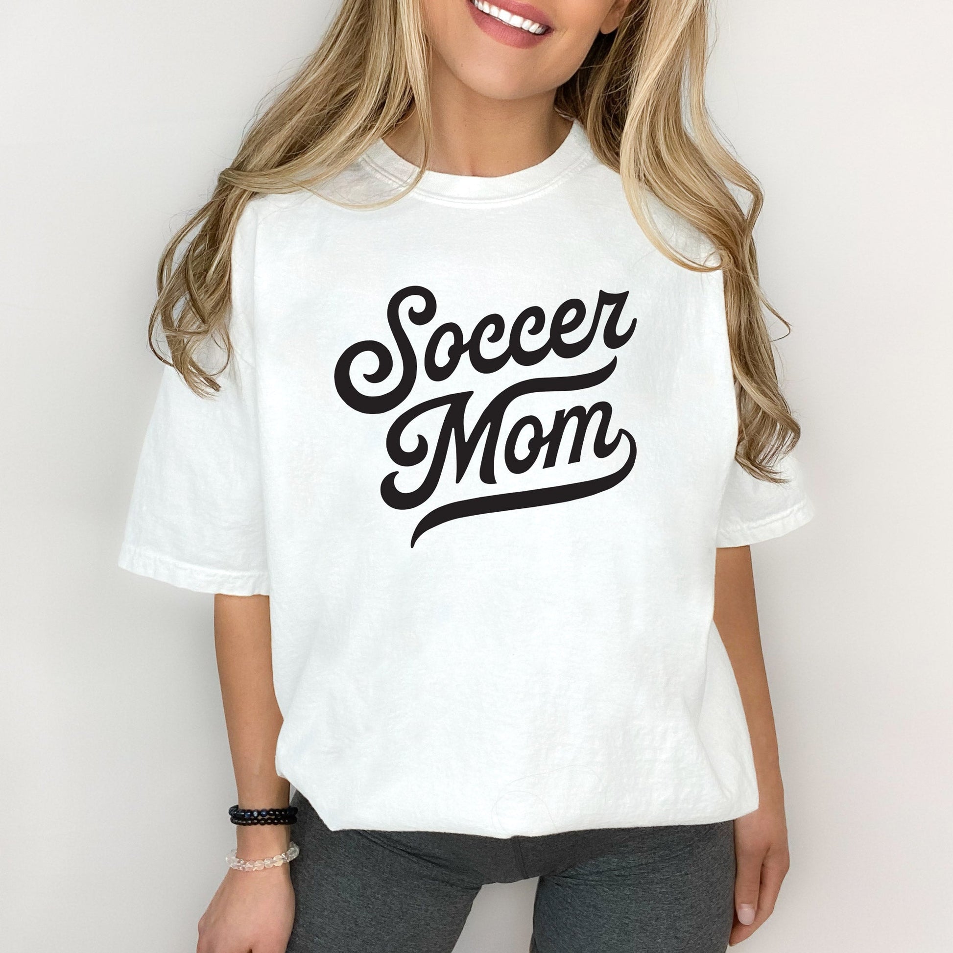 This 100% cotton tee is perfect for the Soccer Mama in your life! Show off your sporty side with a classic varsity script, unisex fit and comfy construction - so you can be comfortable while you cheer on your kiddo. Go team!Â