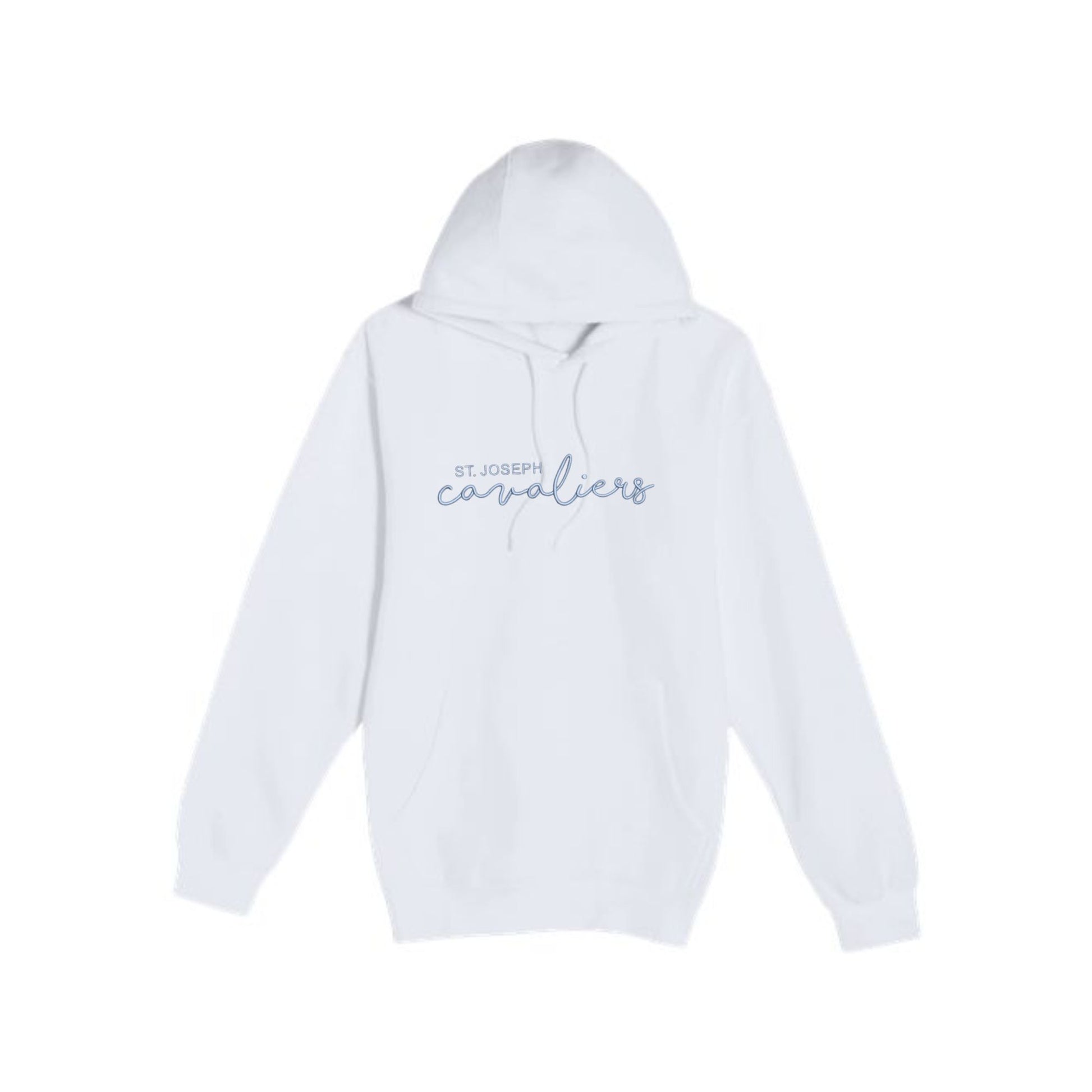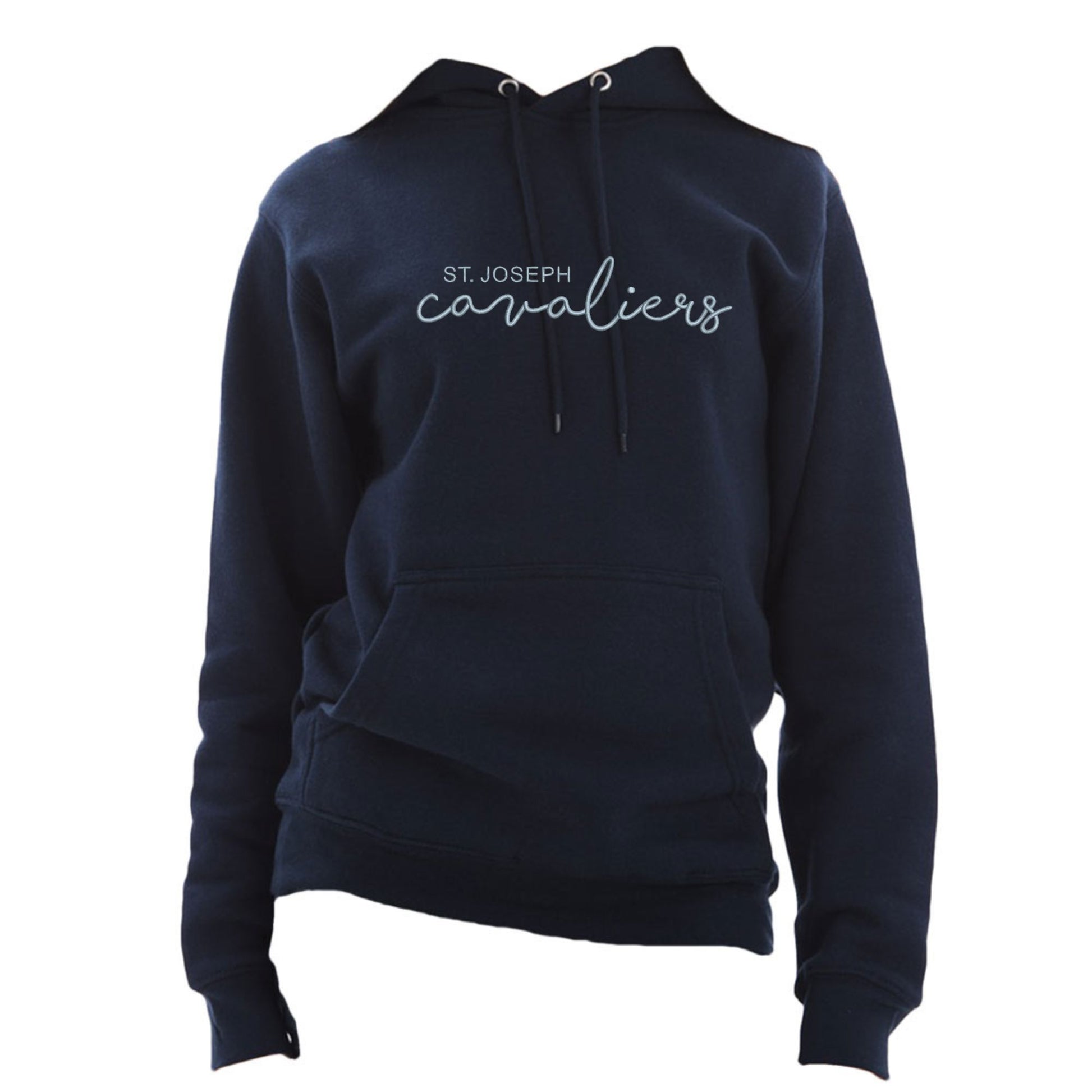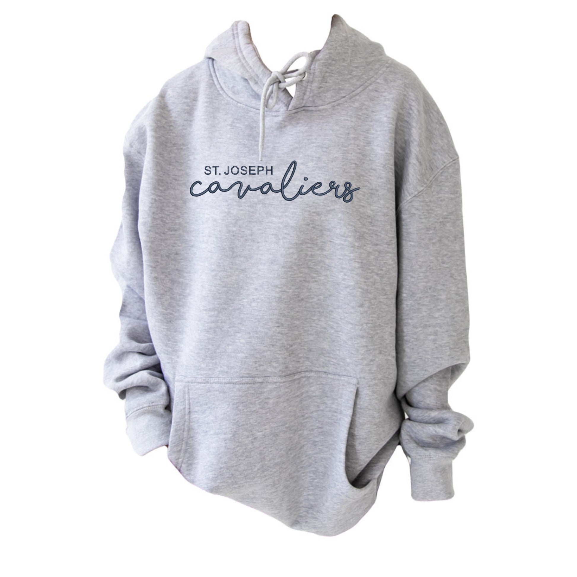 The St. Joseph Cavaliers Script Embroidered Hoodie Sweatshirt showcases elegant script embroidery, giving a stylish yet classic look. This cozy hoodie is designed for comfort and is perfect for students, alumni, and supporters to wear on any occasion.