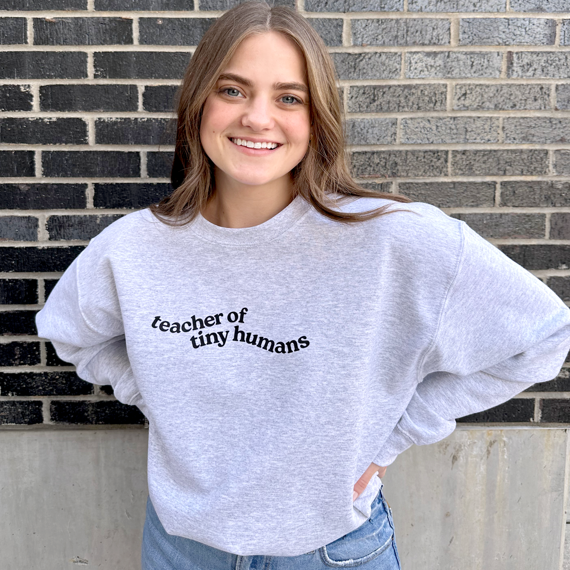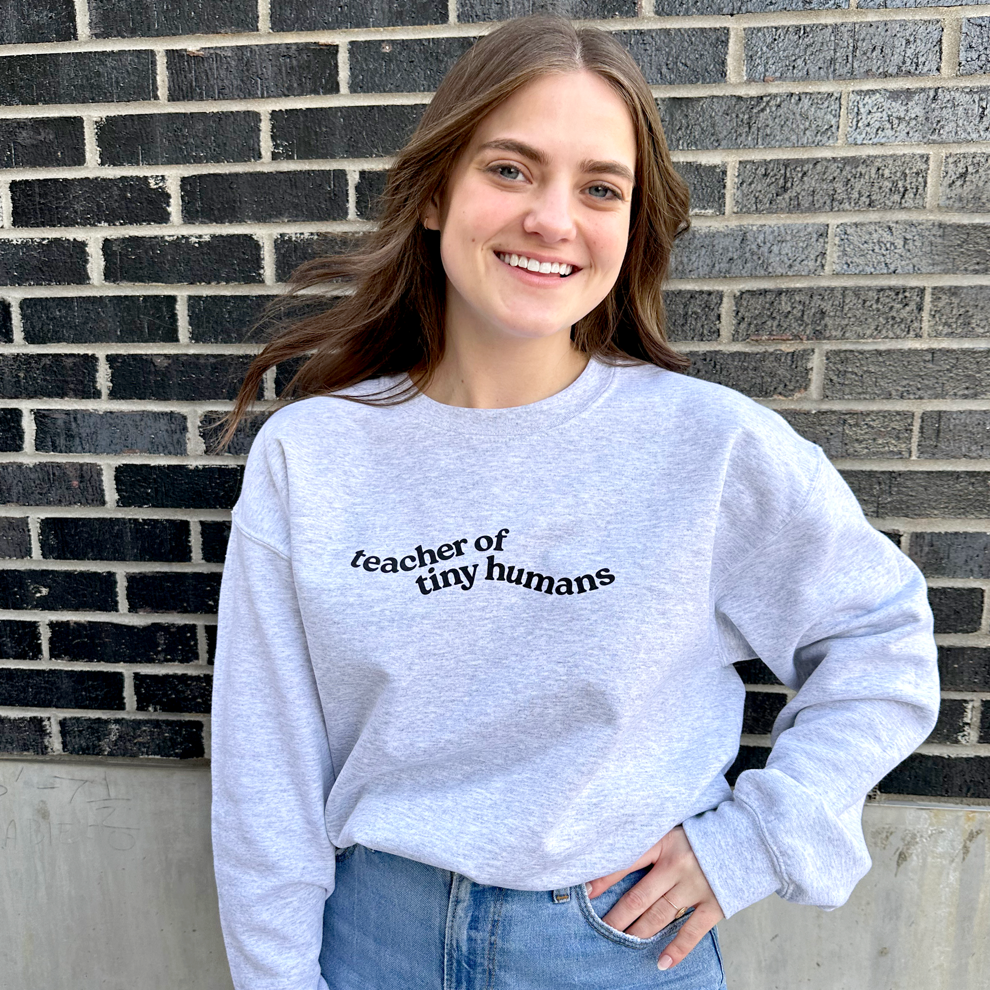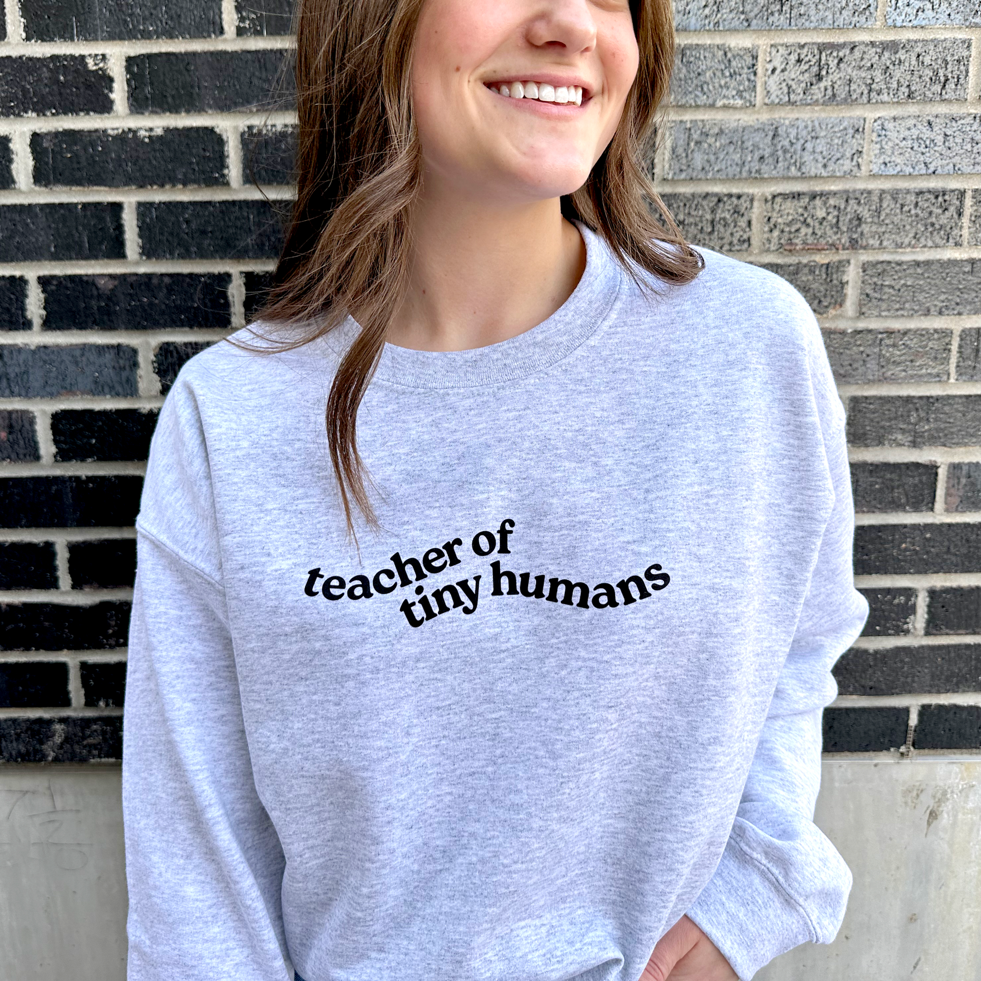 Show off your pride in being a teacher with this super cute and cozy crewneck sweatshirt! Made from soft and comfortable material, this sweatshirt is perfect for everyday wear and will keep you warm and snug on chilly days. The "Teacher of Tiny Humans" design is a playful and fun way to show your passion for teaching and your dedication to your profession.