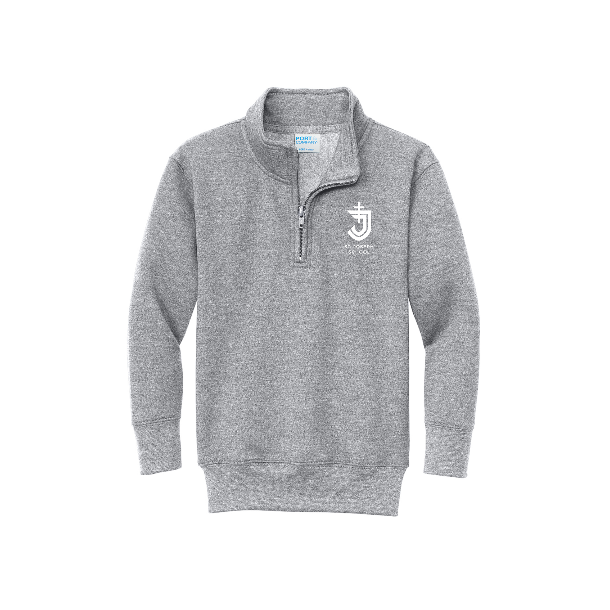This Youth St. Joseph School Logo Embroidered Fleece Quarter Zip offers a comfortable and stylish way for young students to represent their school. Featuring the St. Joseph logo embroidered on the left chest, this cozy sweatshirt fleece is perfect for layering during cooler days. Designed with a versatile quarter-zip neckline, it’s ideal for school events, outdoor activities, and everyday wear.